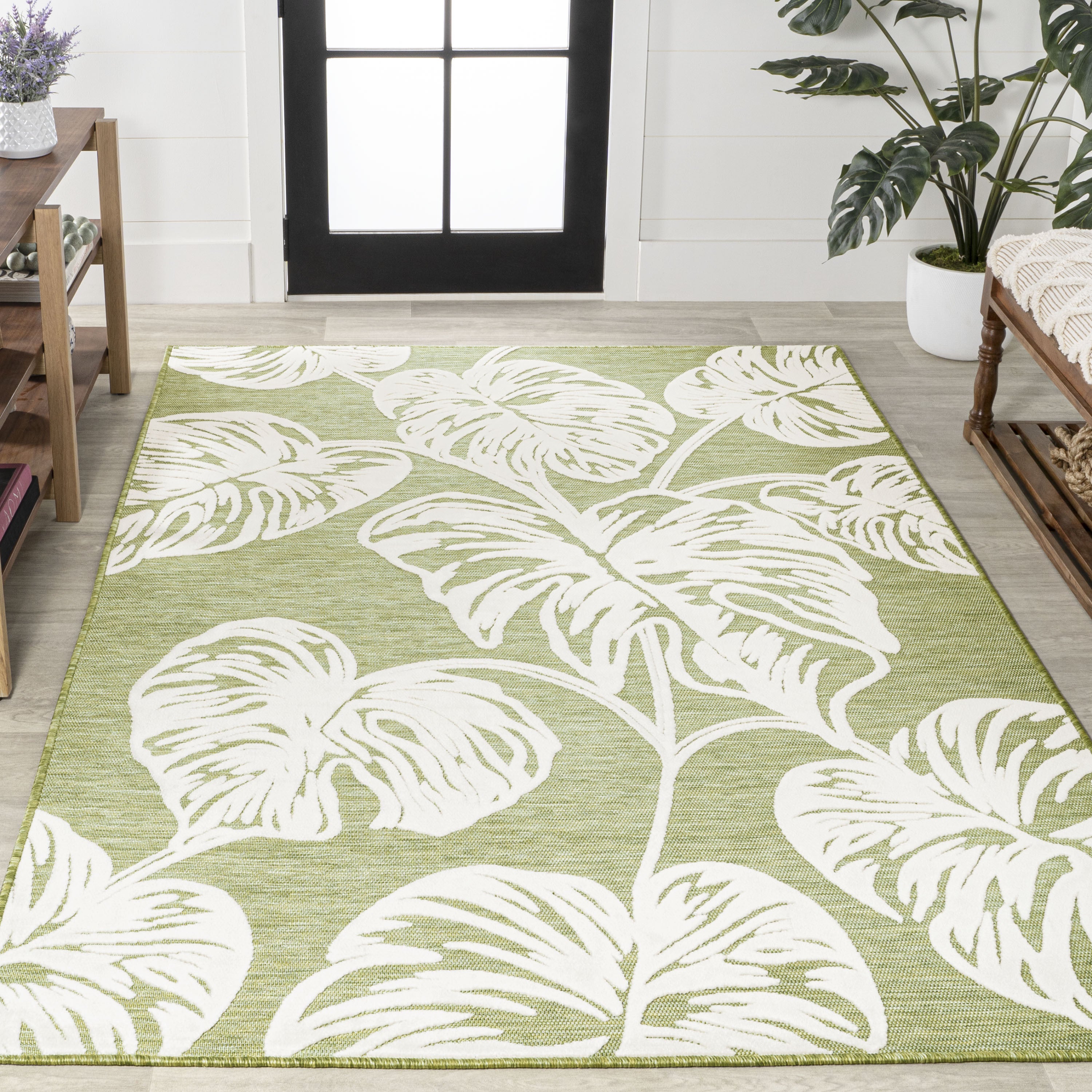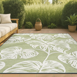 3' X 5' Light Green And Ivory Floral Indoor Outdoor Area Rug