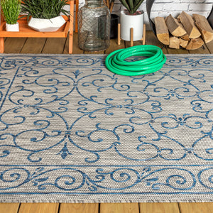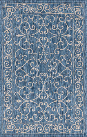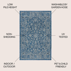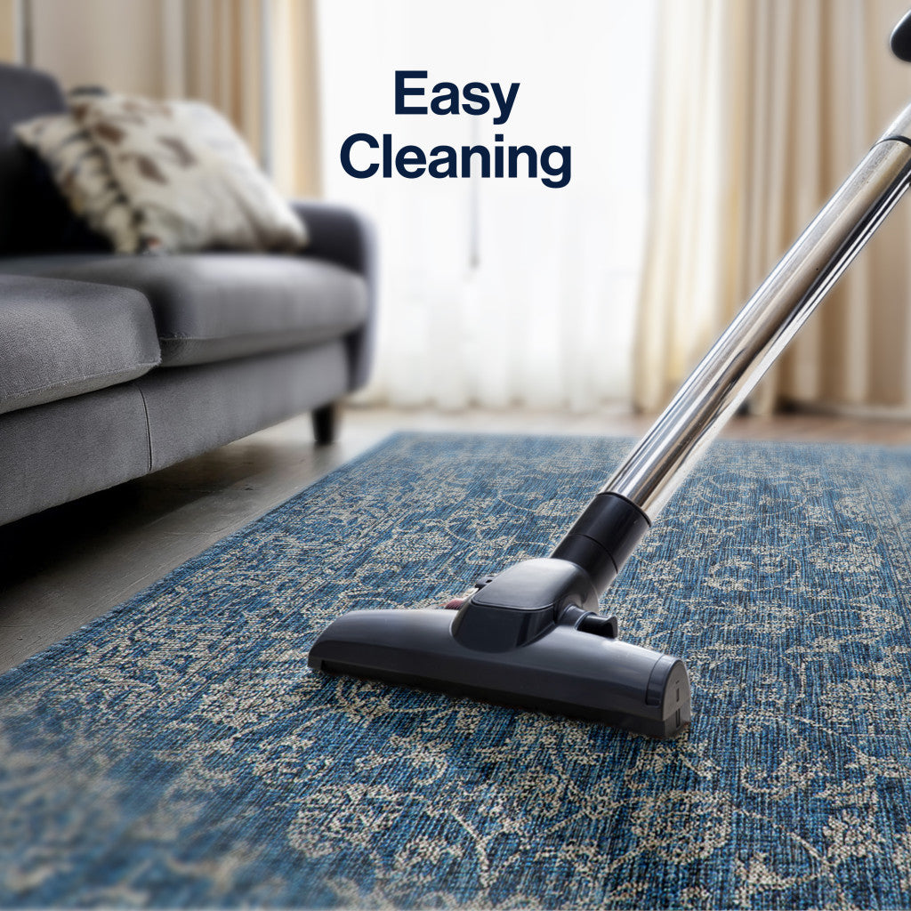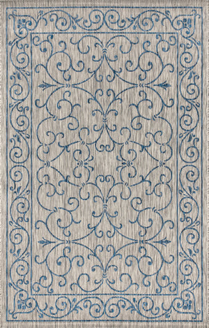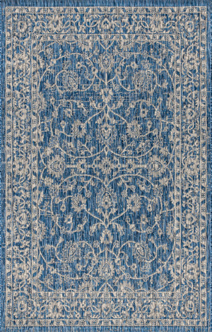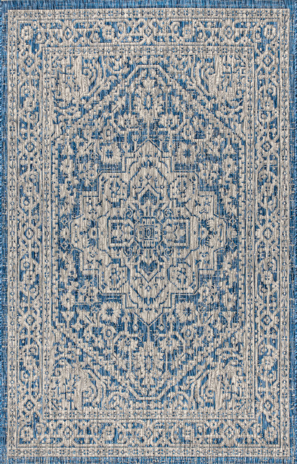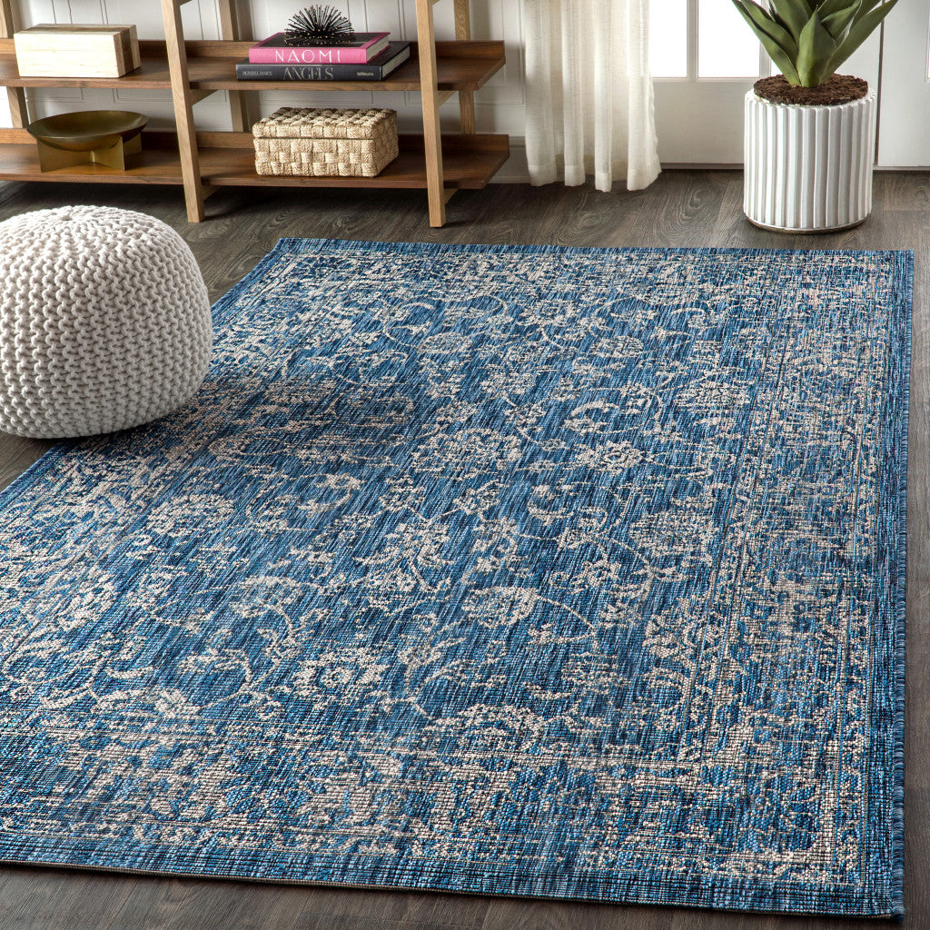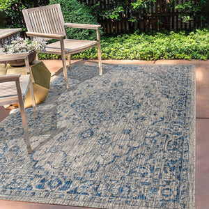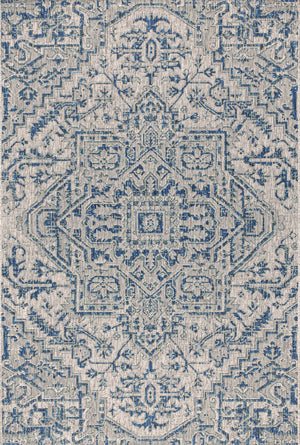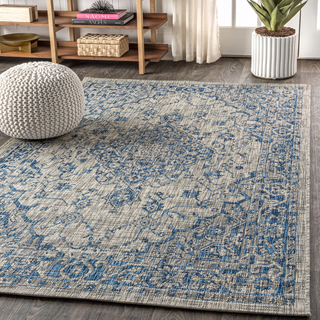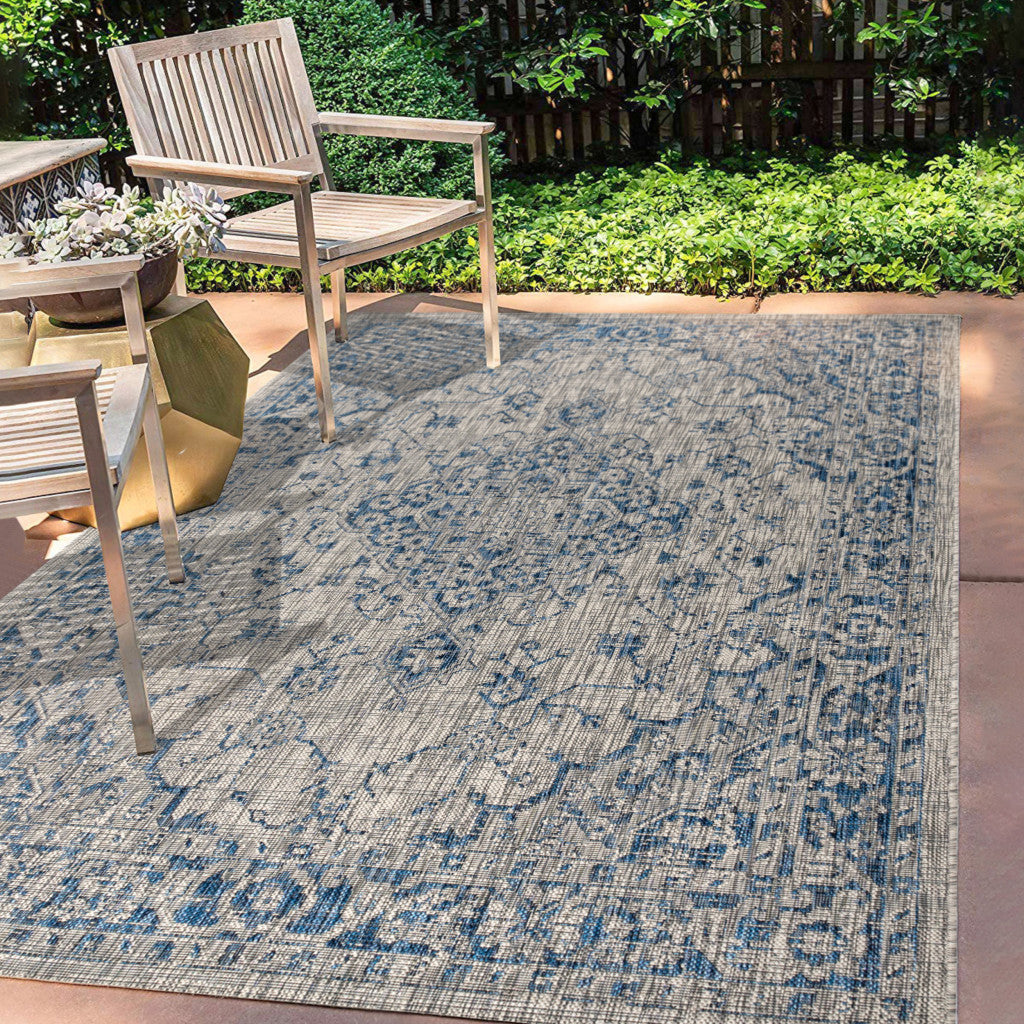 3' X 5' Navy Blue And Gray Medallion Indoor Outdoor Area Rug
