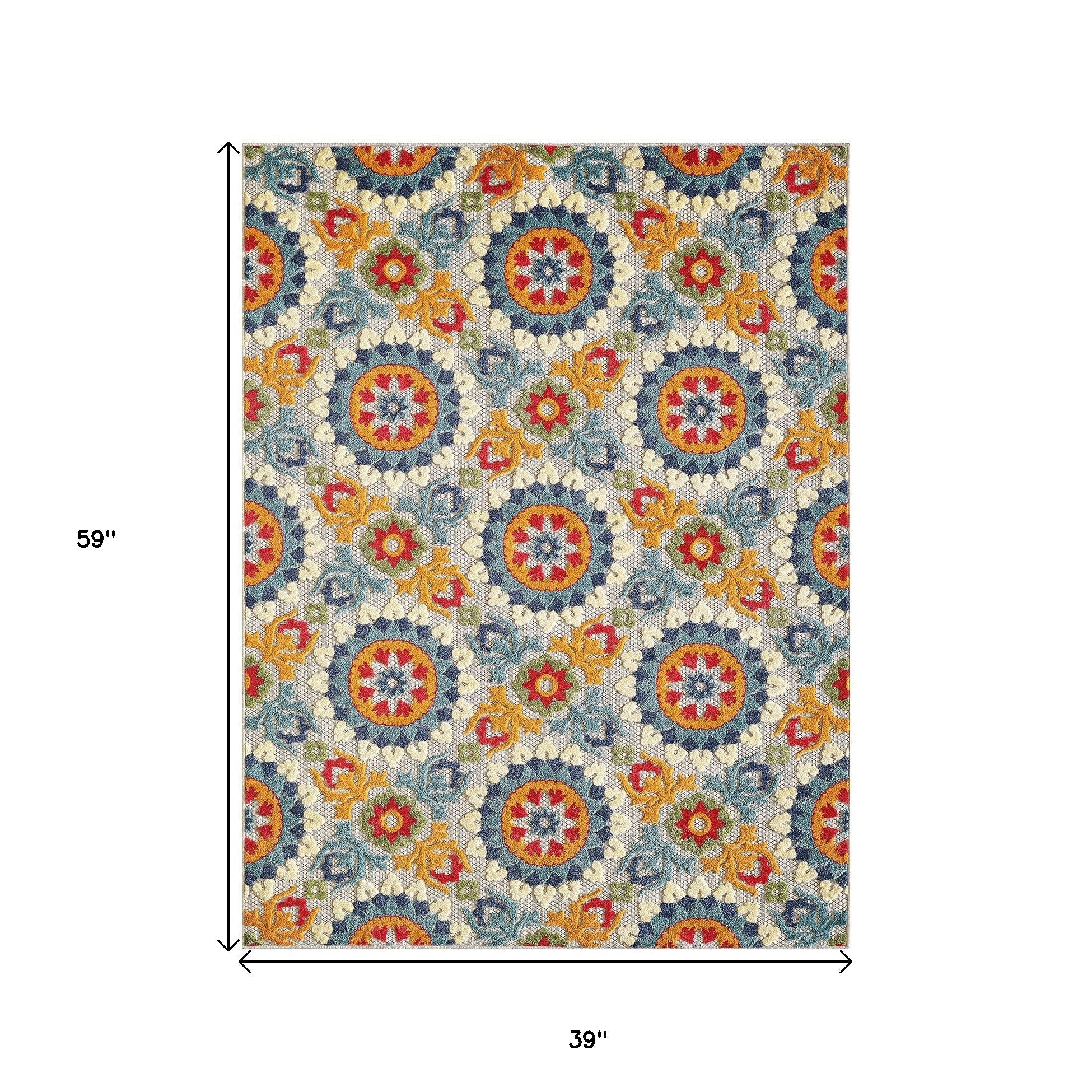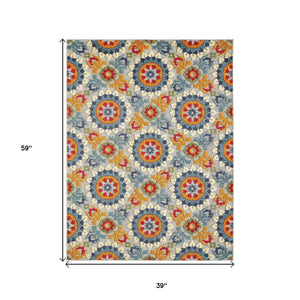 3' X 5' Orange And Ivory Moroccan Stain Resistant Indoor Outdoor Area Rug