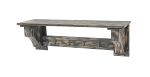 30" Black Distressed Wood Four Hook Wall Mounted Hanging Coat Rack