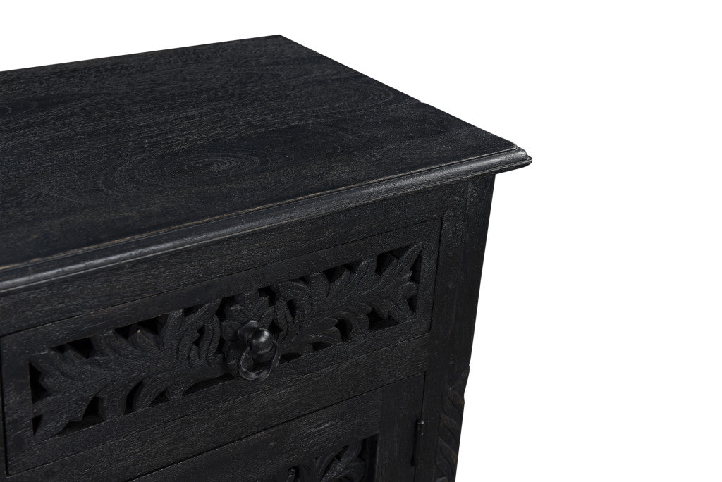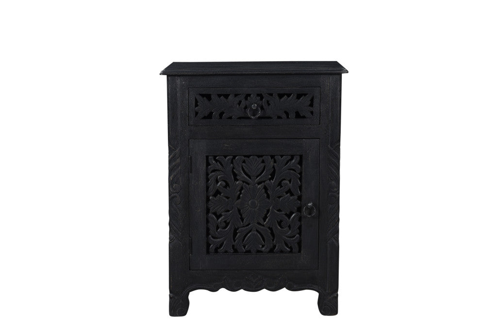 30" Black Solid Wood Distressed One Drawer Nightstand