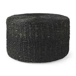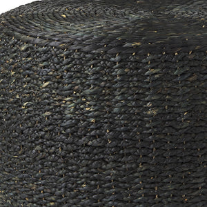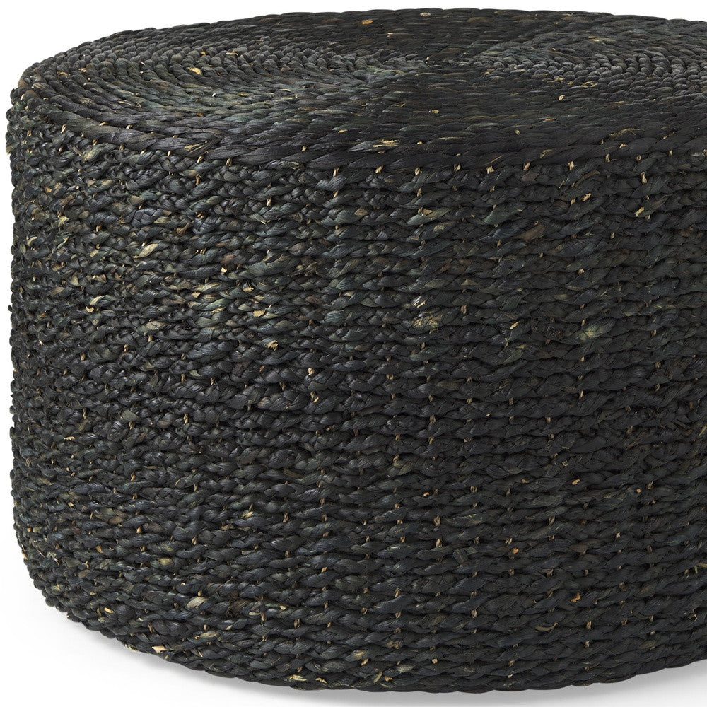 30" Black Water Hyacinth Round Pouf Ottoman