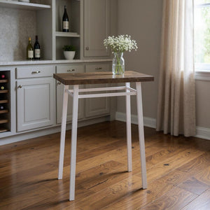 30" Brown and White Metal and Solid Wood Square Bar Table