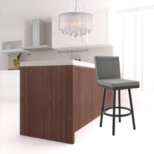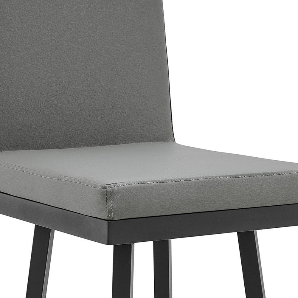 30" Gray And Black Faux Leather And Iron Swivel Bar Height Bar Chair