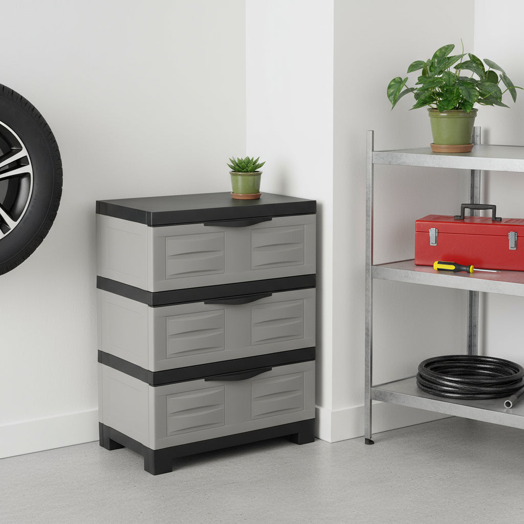30" Gray And Black Heavy Duty Plastic Three Drawer Utility Cabinet