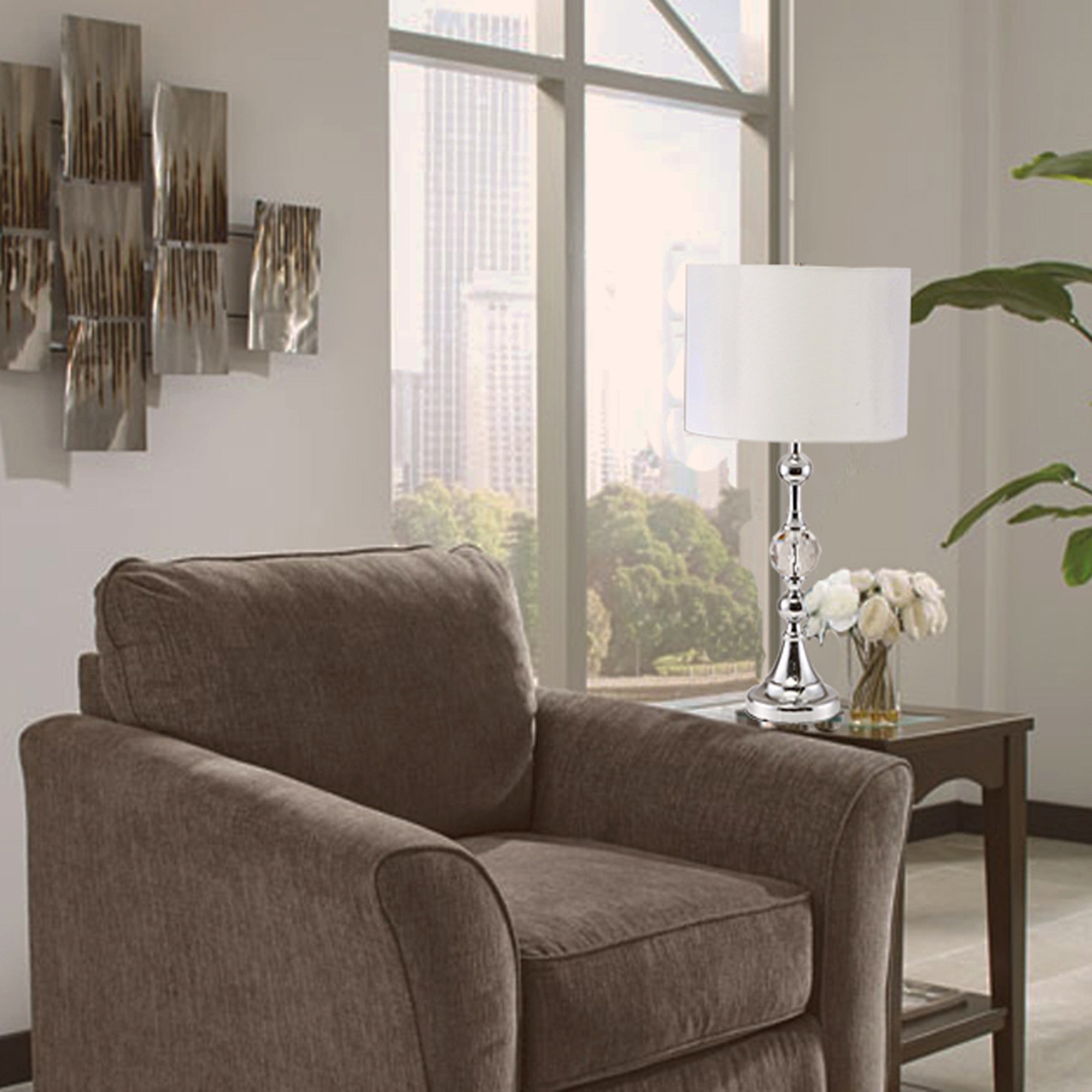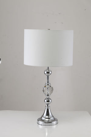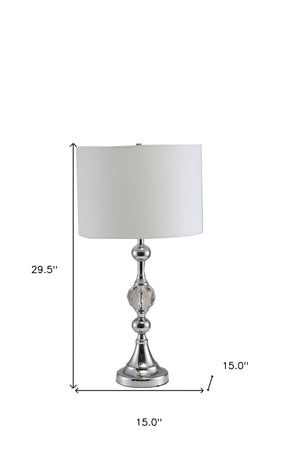 30" Silver Metal Bedside Table Lamp With White Classic Drum Shade