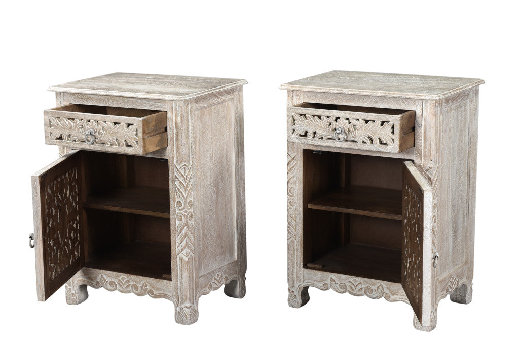 30" White Solid Wood Distressed One Drawer Nightstand