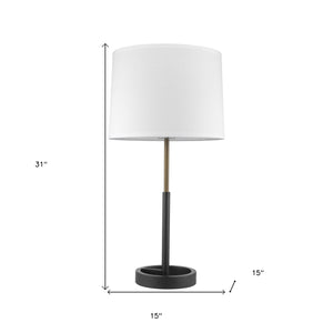 31" Black and Gold Metal Table Lamp With White Empire Shade