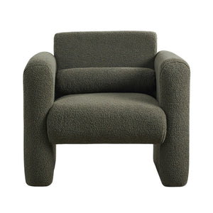 31" Olive Green Boucle Upholstered Arm Chair And Toss Pillow