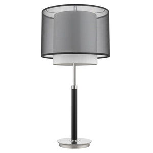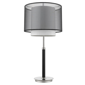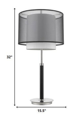 32" Black and Silver Metal Column Lamp With Black and White Drum Shade