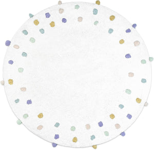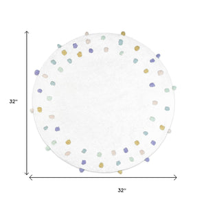 32" Green Purple And White Cotton Round Polka Dots Bath Rug