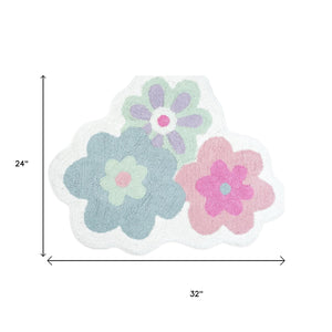 32" Pink And White Cotton Flowers Floral Bath Rug