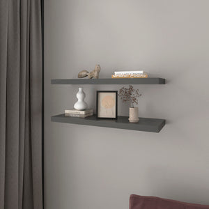 32" Set Of Two Dark Gray Wood Wall Mounted Floating Shelves