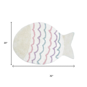 32" White Pink And Purple Cotton Fish Shaped Youthful Bath Rug