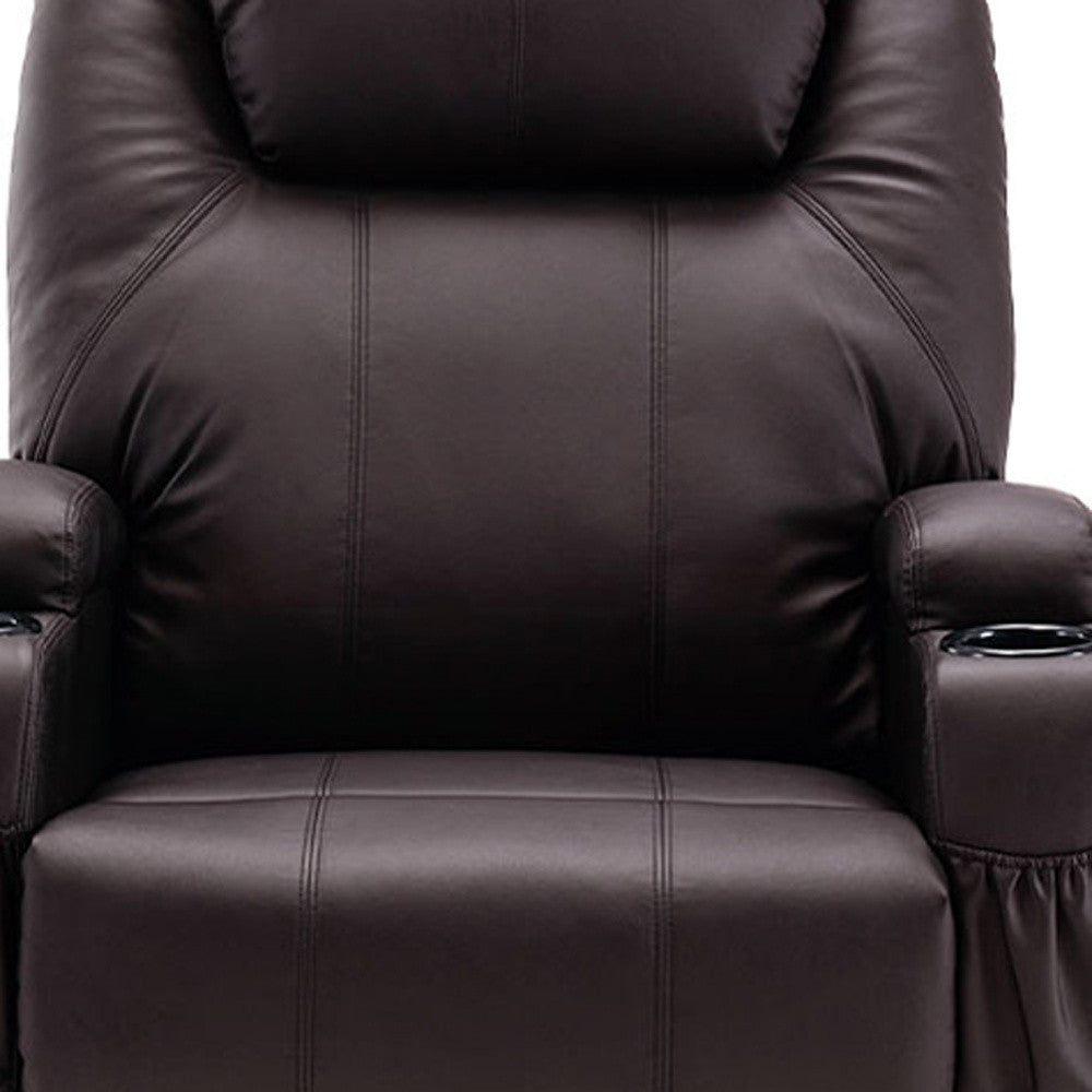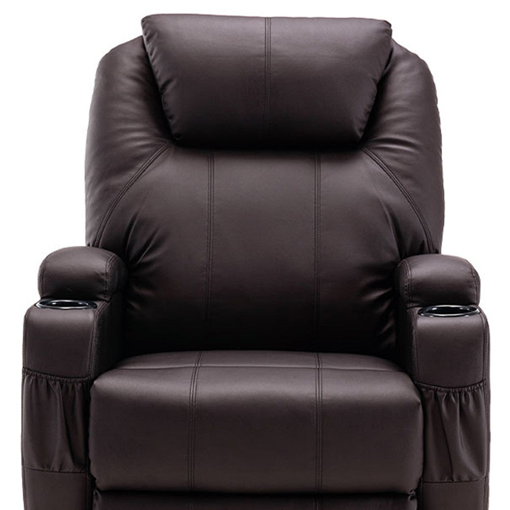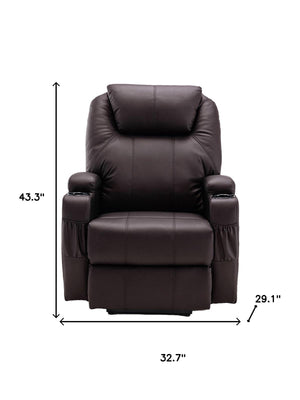 33" Brown Faux Leather Power Heated Massage Lift Assist Recliner