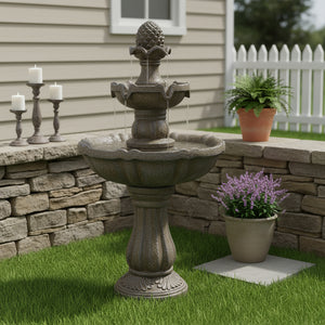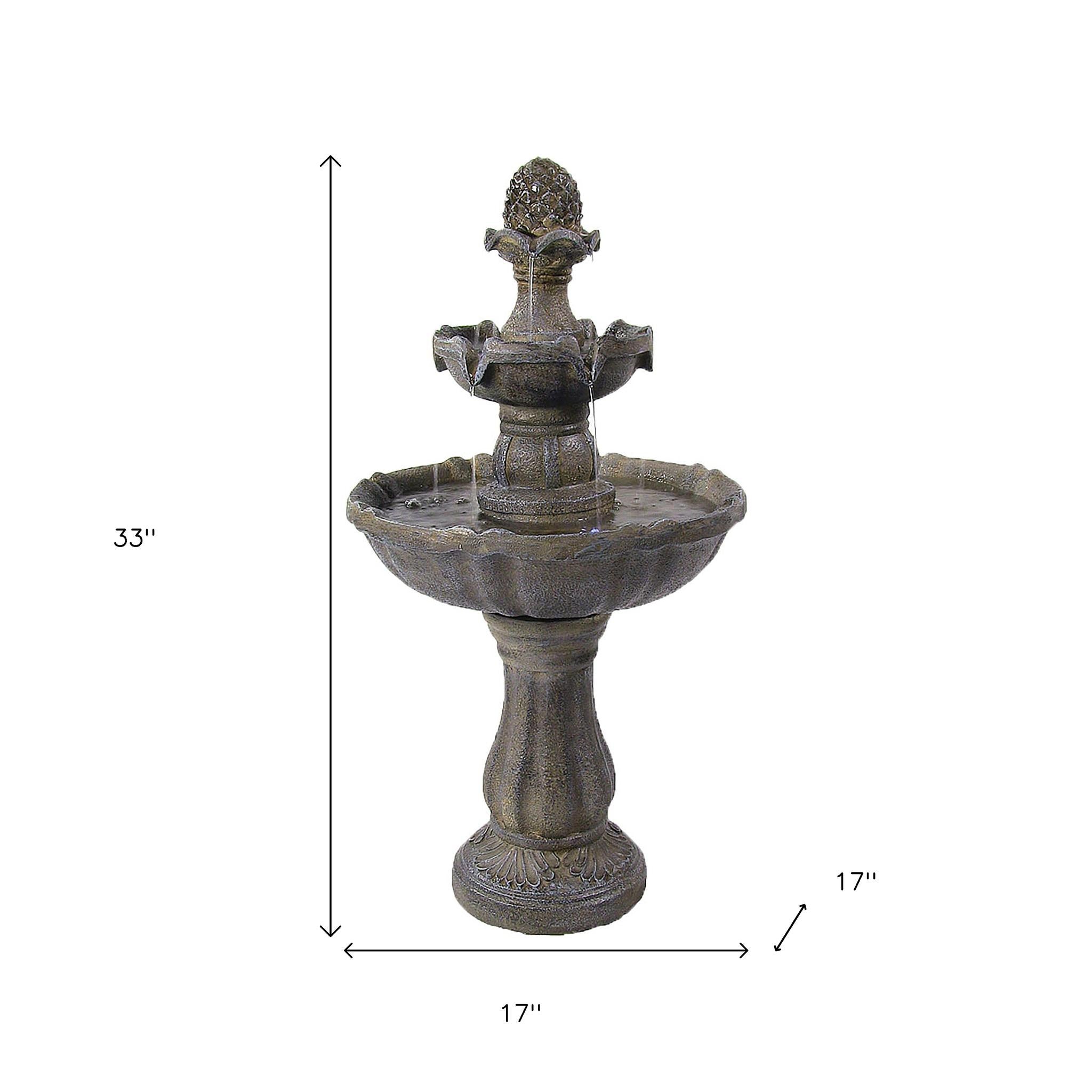 33" Brown Polyresin LED lights Garden Art
