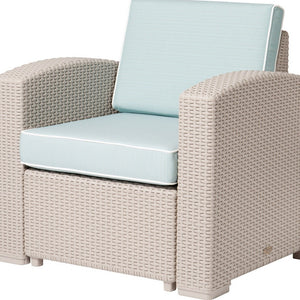 33" Gray Heavy Duty Plastic Outdoor Club Chair With Blue Cushion