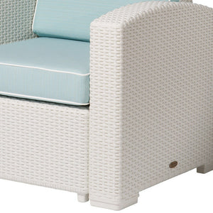 33" White Heavy Duty Plastic Outdoor Club Chair With Aqua Blue Cushion
