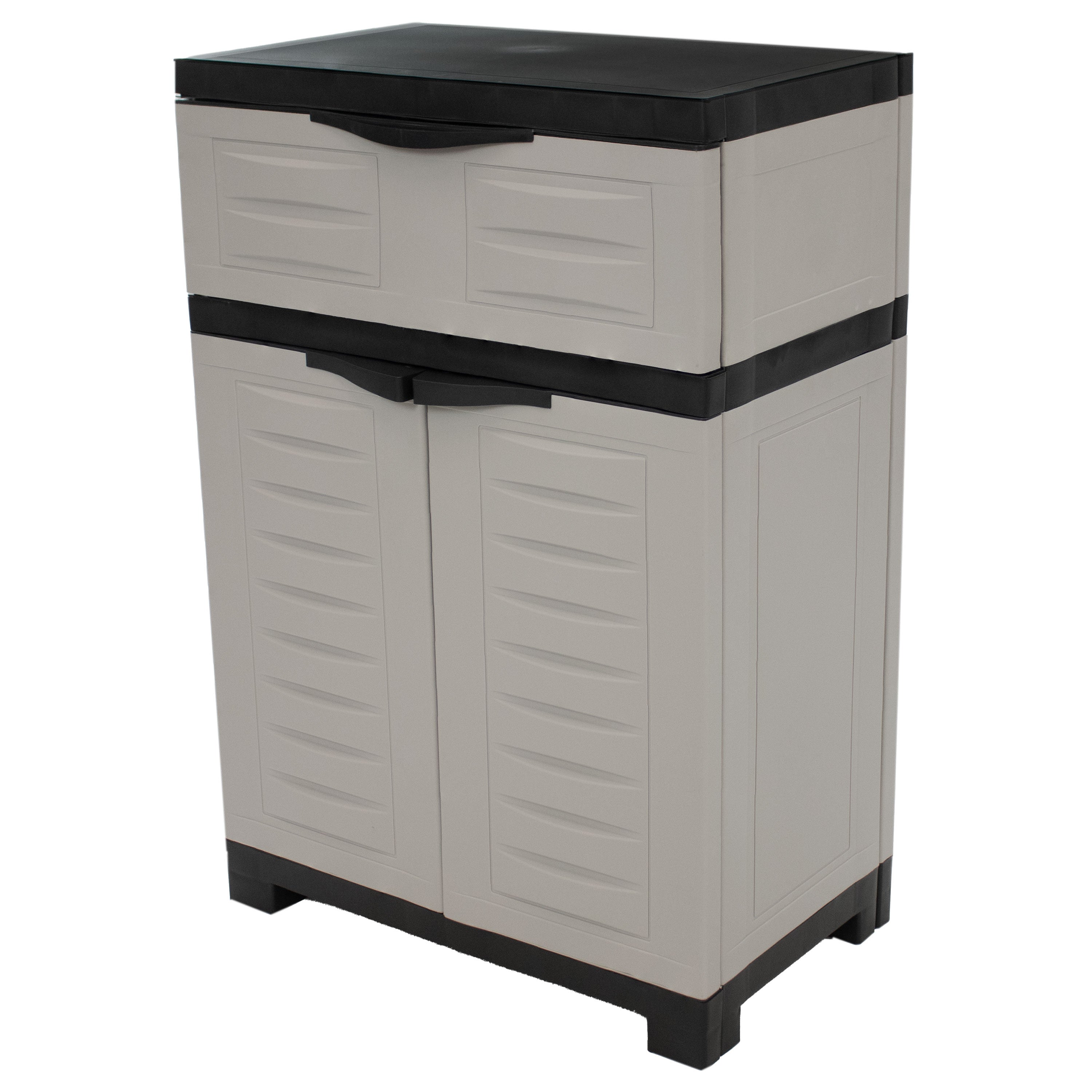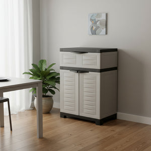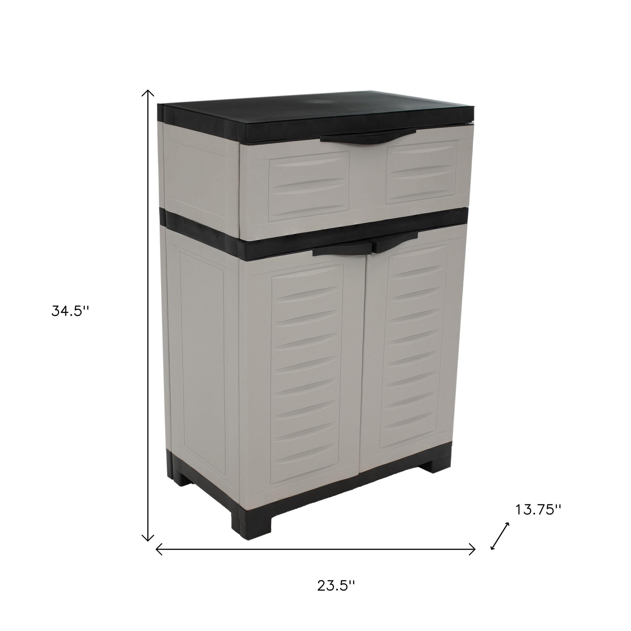 35" Gray Heavy Duty Plastic Two Door One Drawer Utility Cabinet