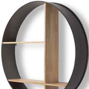 36" Black And Brown Metal And Wood Circular Multi Tier Shelf