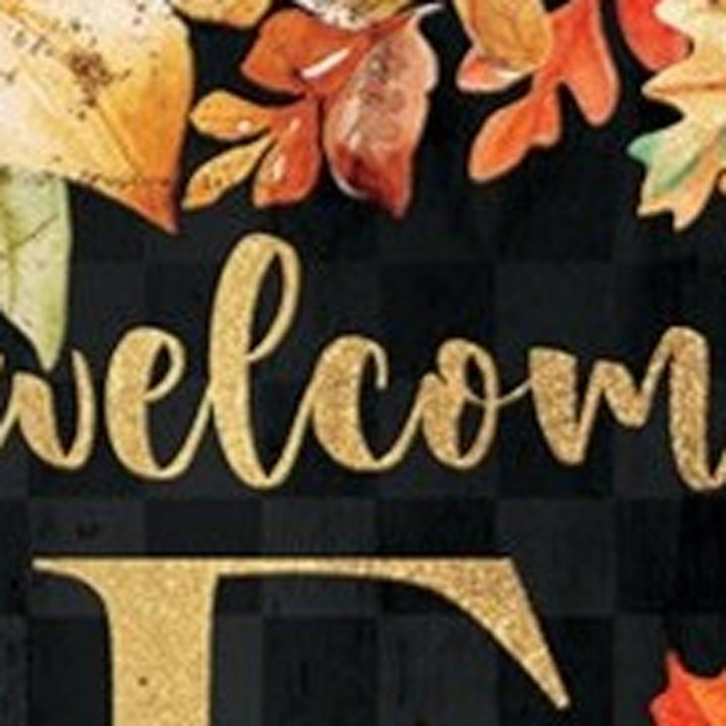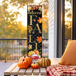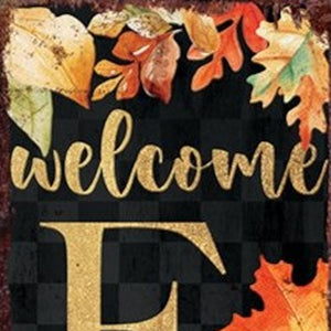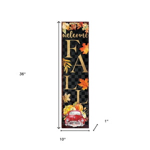 36" Black Orange And Gold Welcome Autumn Leaves Solid Wood Porch Sign