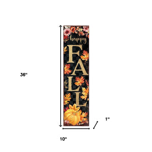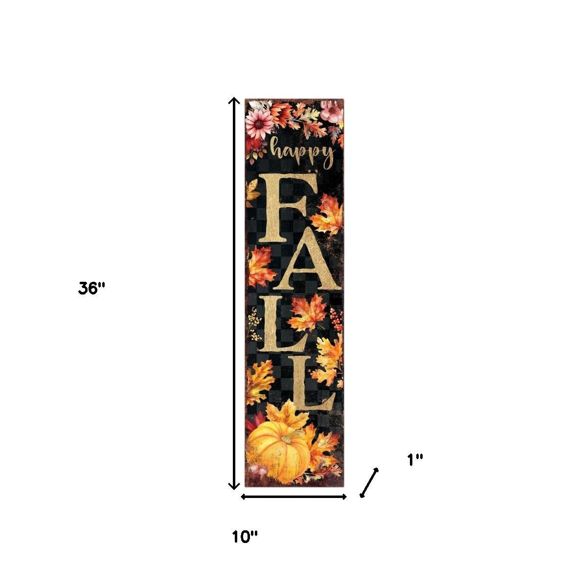 36" Black Orange And White Happy Fall Halloween Solid Wood Porch Sign