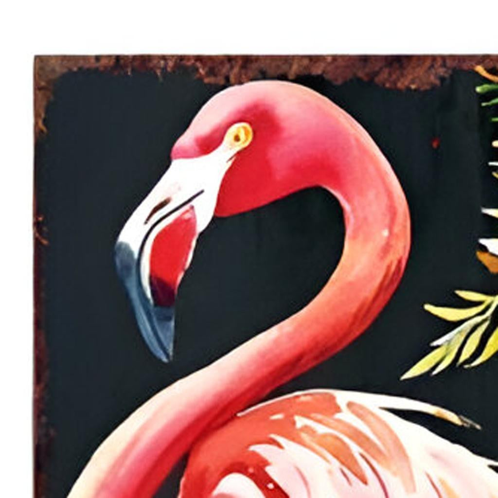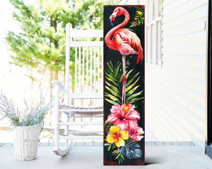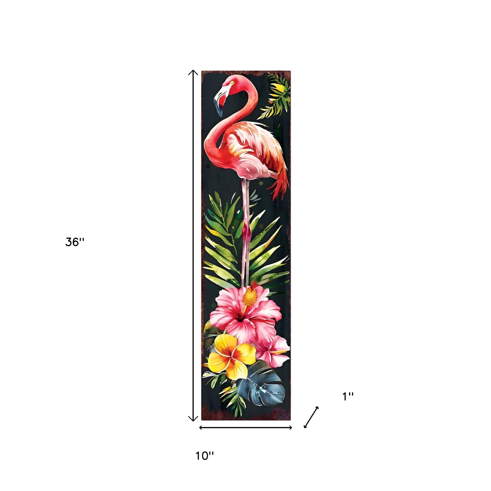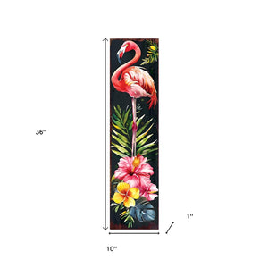 36" Black Pink And Coral Solid Wood Flamingo Porch Sign