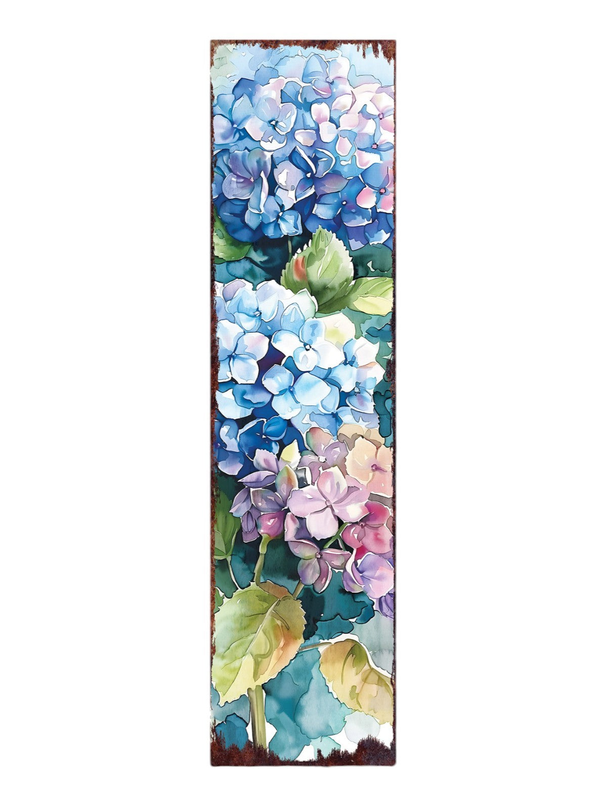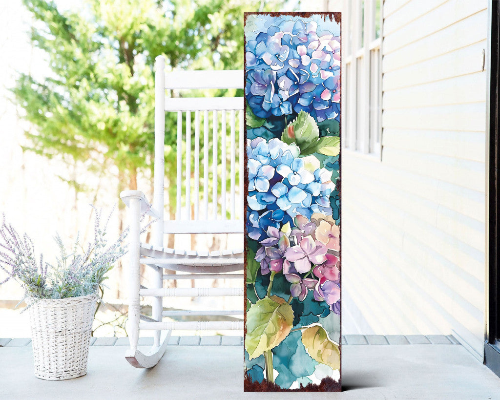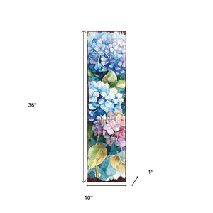 36" Blue Green And Purple Hydrangeas Solid Wood Porch Sign