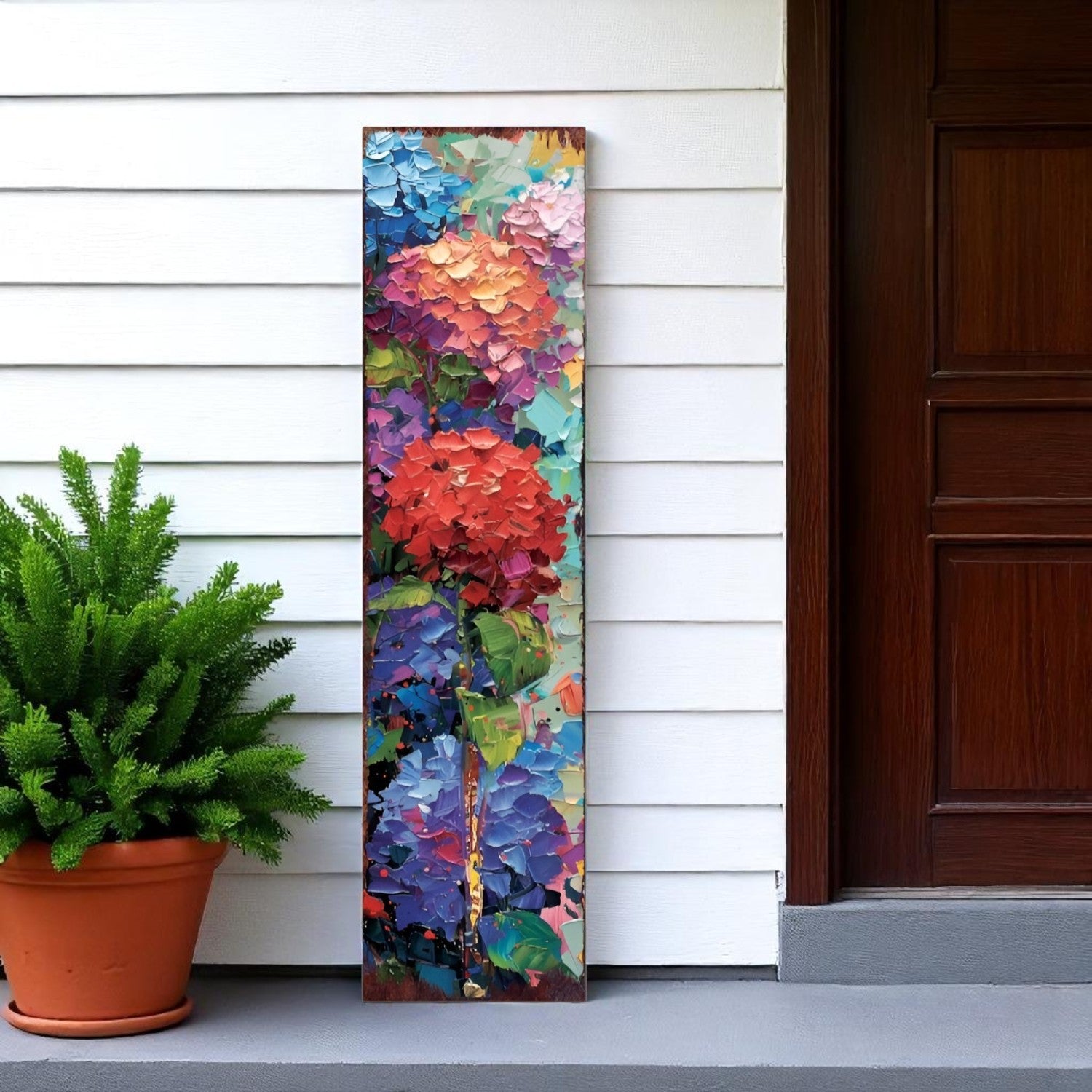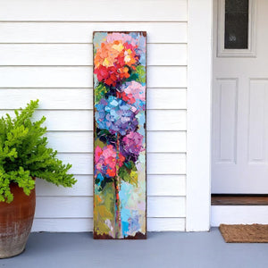 36" Blue Purple And Red Hydrangeas Solid Wood Porch Sign