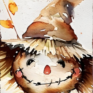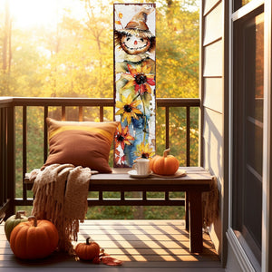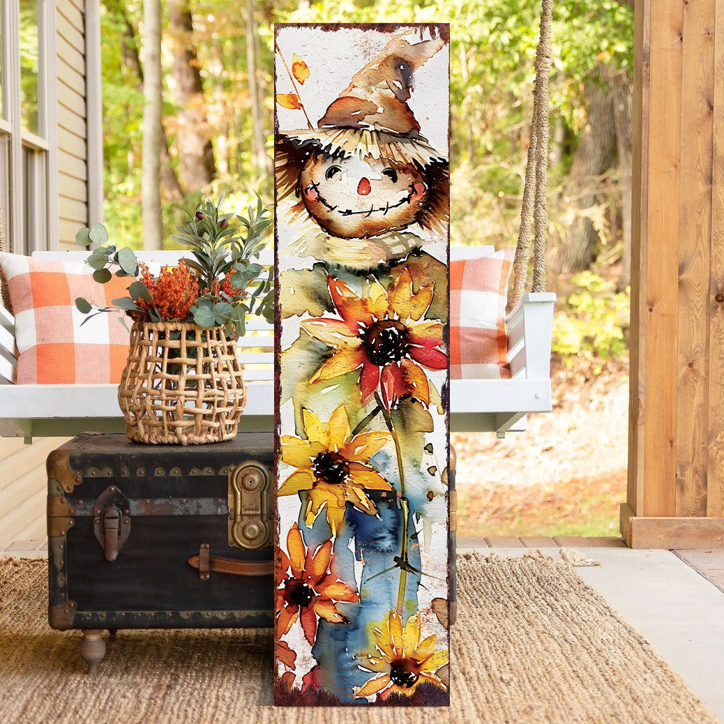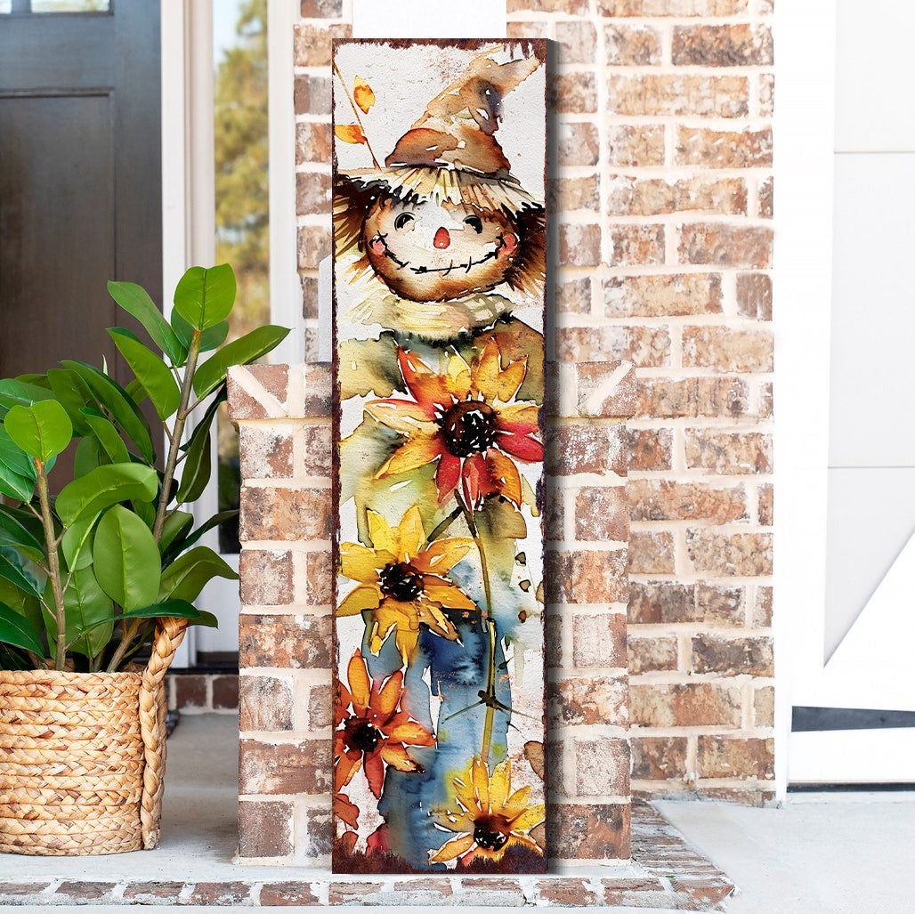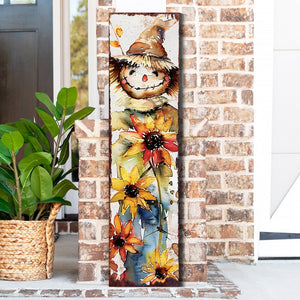 36" Brown White And Yellow Scarecrow Solid Wood Porch Sign