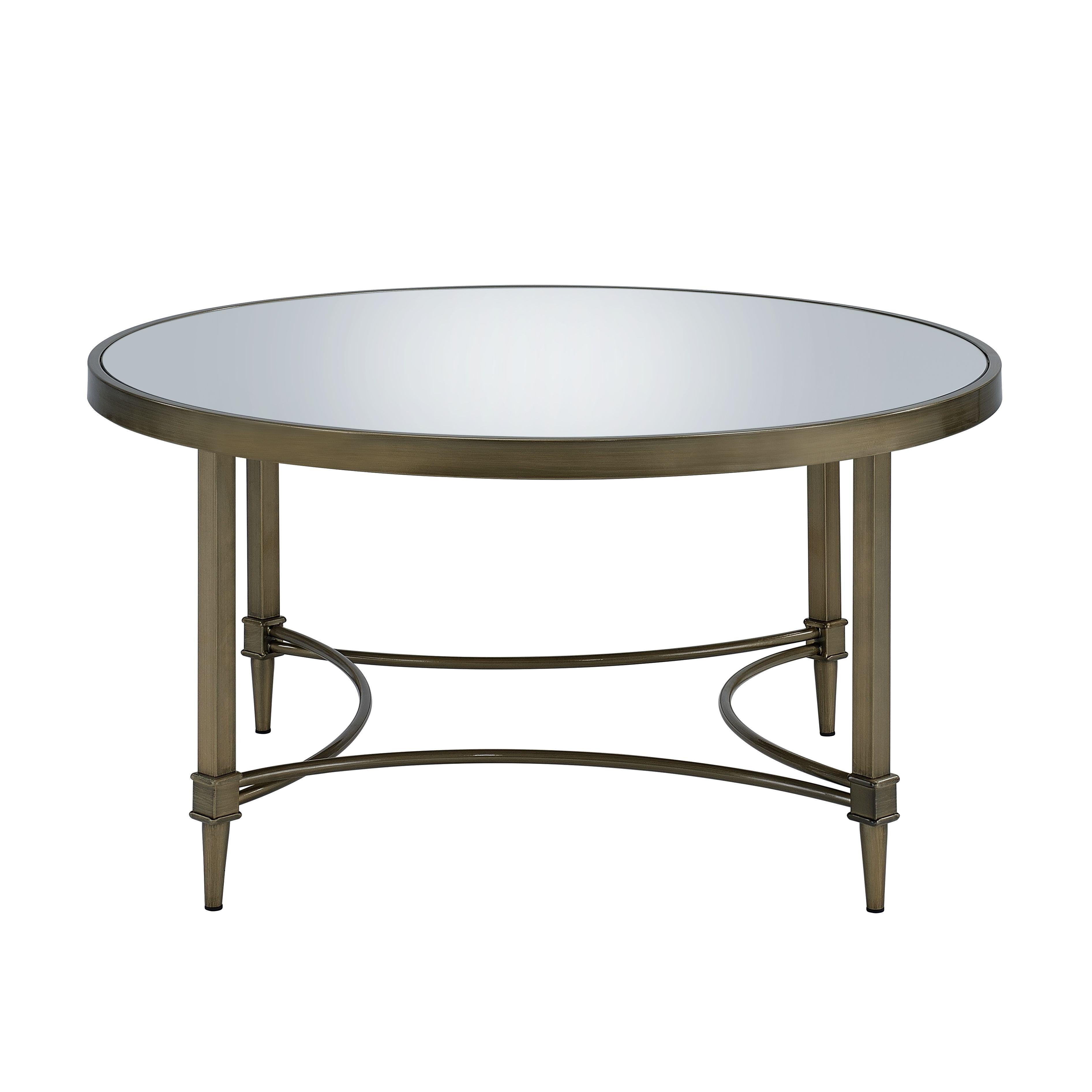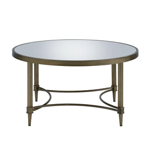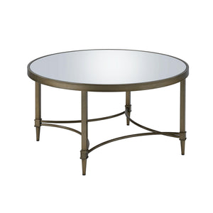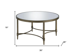 36" Clear and Antiqued Brass Glass and Steel Round Distressed Coffee Table