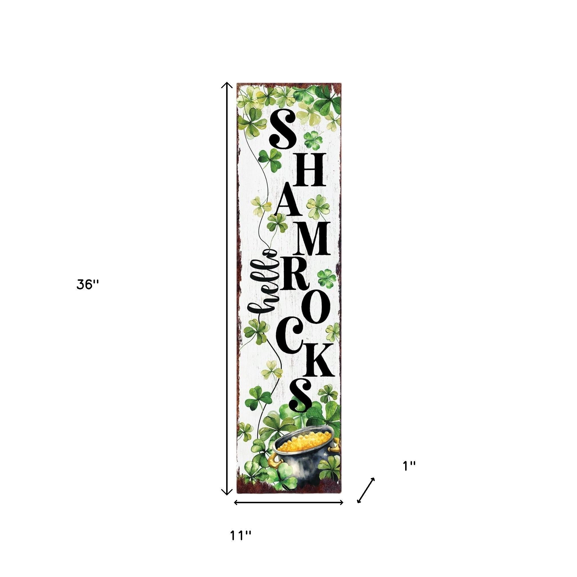 36" Gold Green And White Solid Wood Hello St Patrick's Day Shamrock Porch Sign