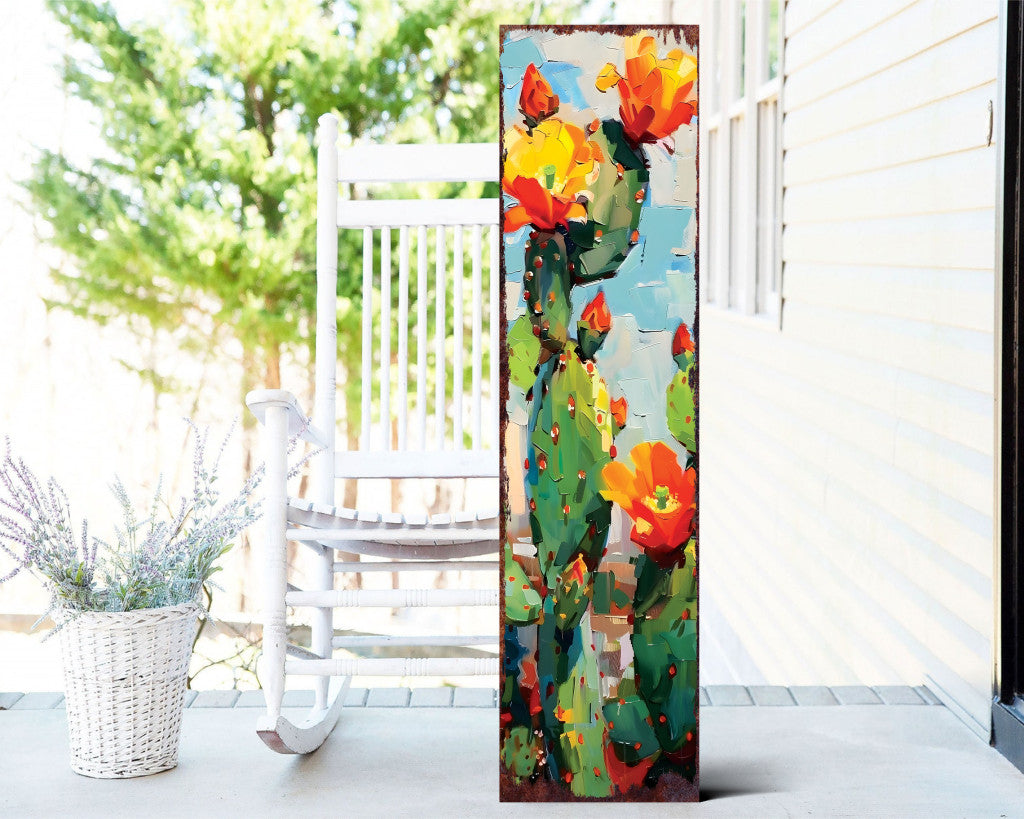 36" Green And Orange Cactus Solid Wood Porch Sign