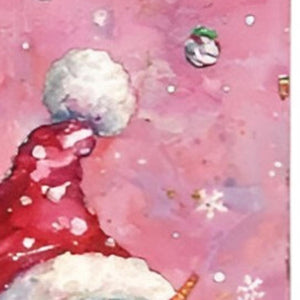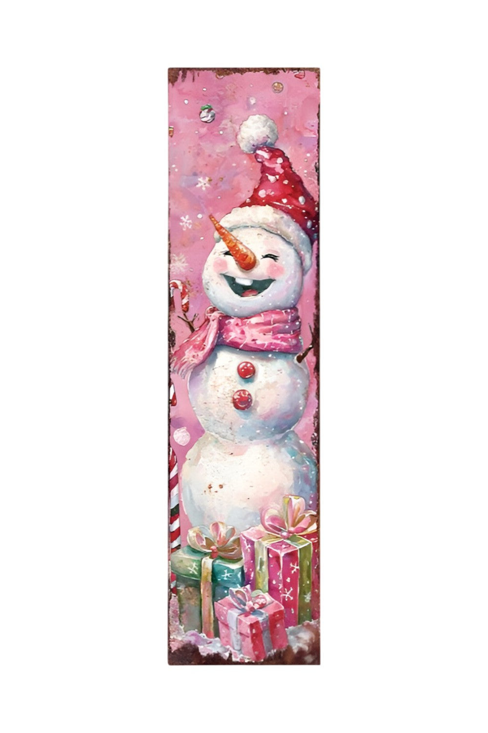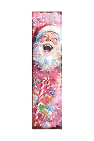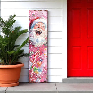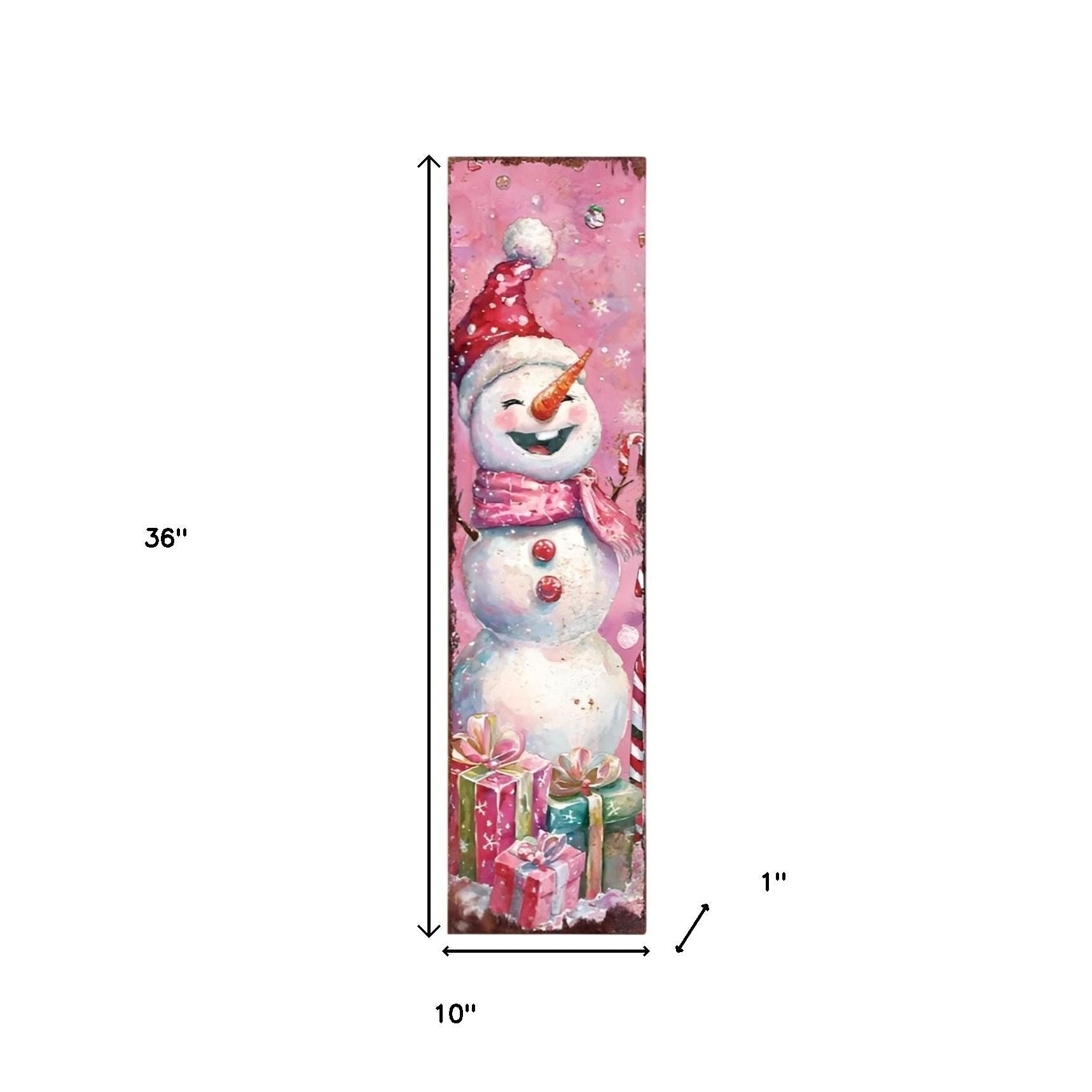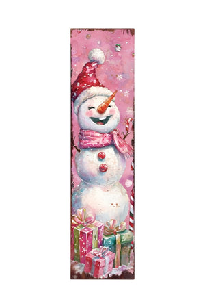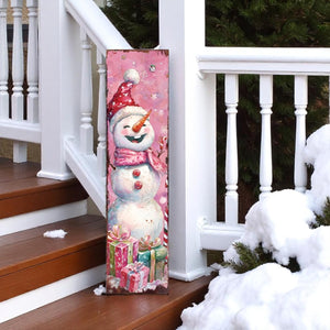 36" Pink Red And White Christmas Santa and Snowman Solid Wood Reversible Porch Sign