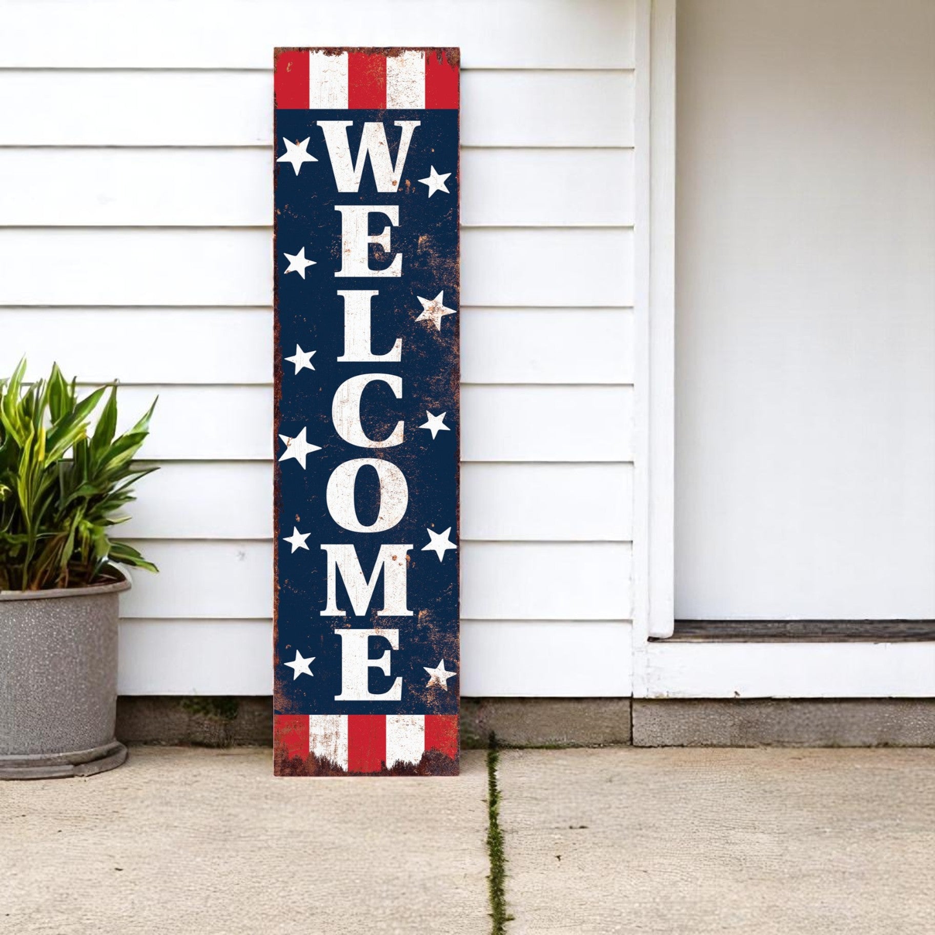 36" Red White And Blue Americana Wood Welcome Reversible Porch Sign