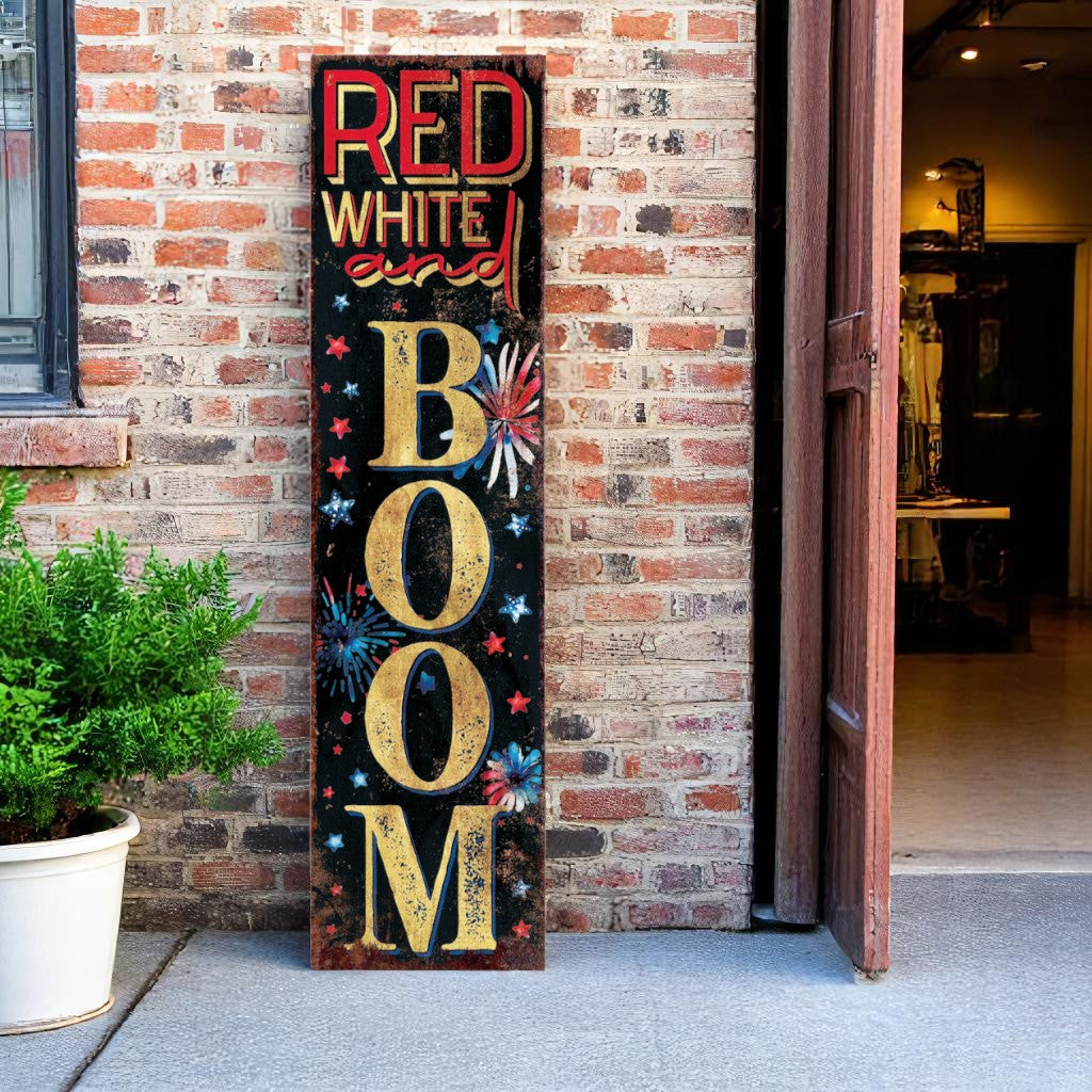 36" Red White And Blue July Fourth Wood Welcome Reversible Porch Sign