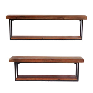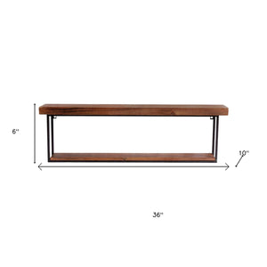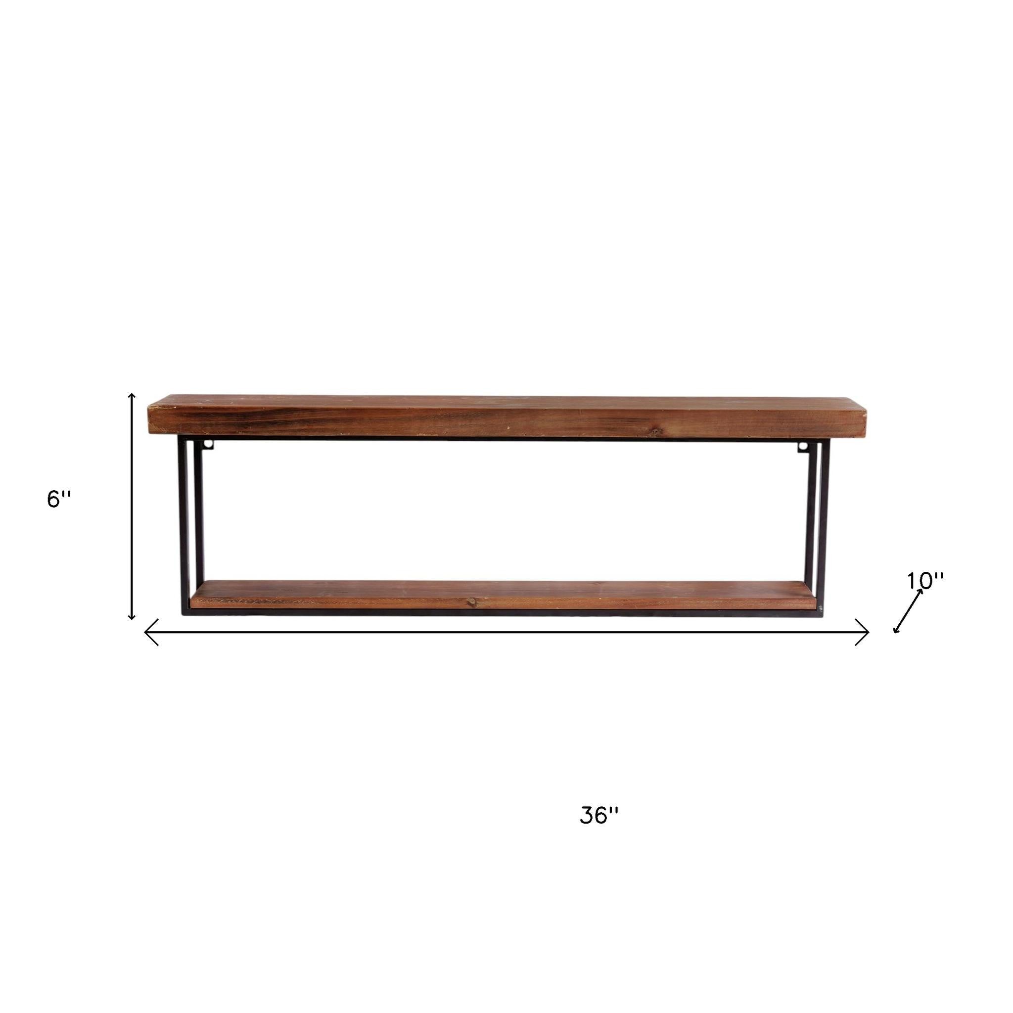 36" Set Of Two Black And Brown Wood And Metal Two Level Accent Shelf