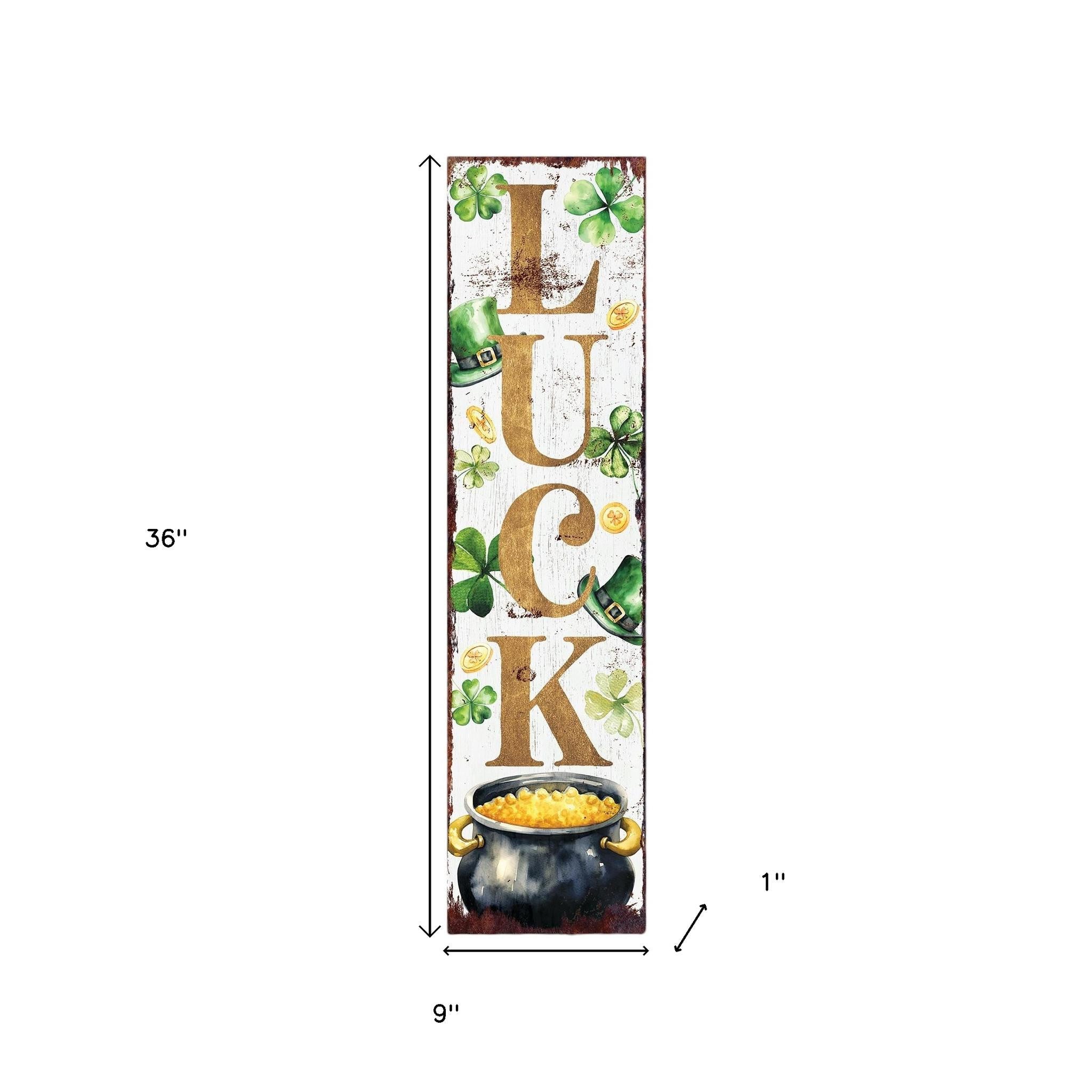 36" White Gold And Green Solid Wood Luck St Patrick's Day Porch Sign