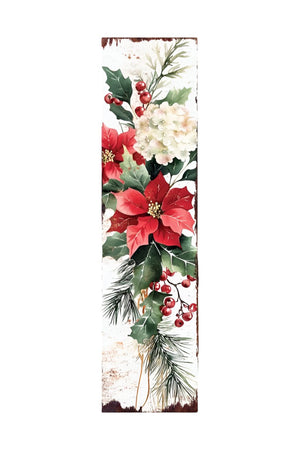 36" White Green And Red Christmas Poinsettia Solid Wood Porch Sign