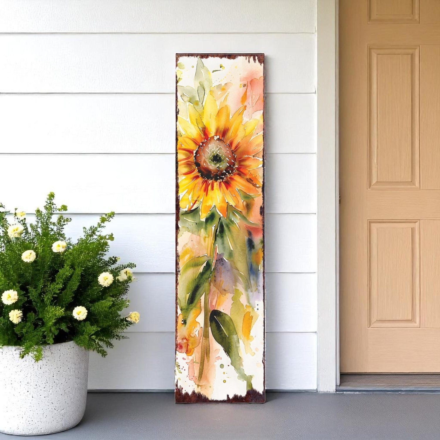 36" Yellow Brown And Green Sunflowers Solid Wood Porch Sign