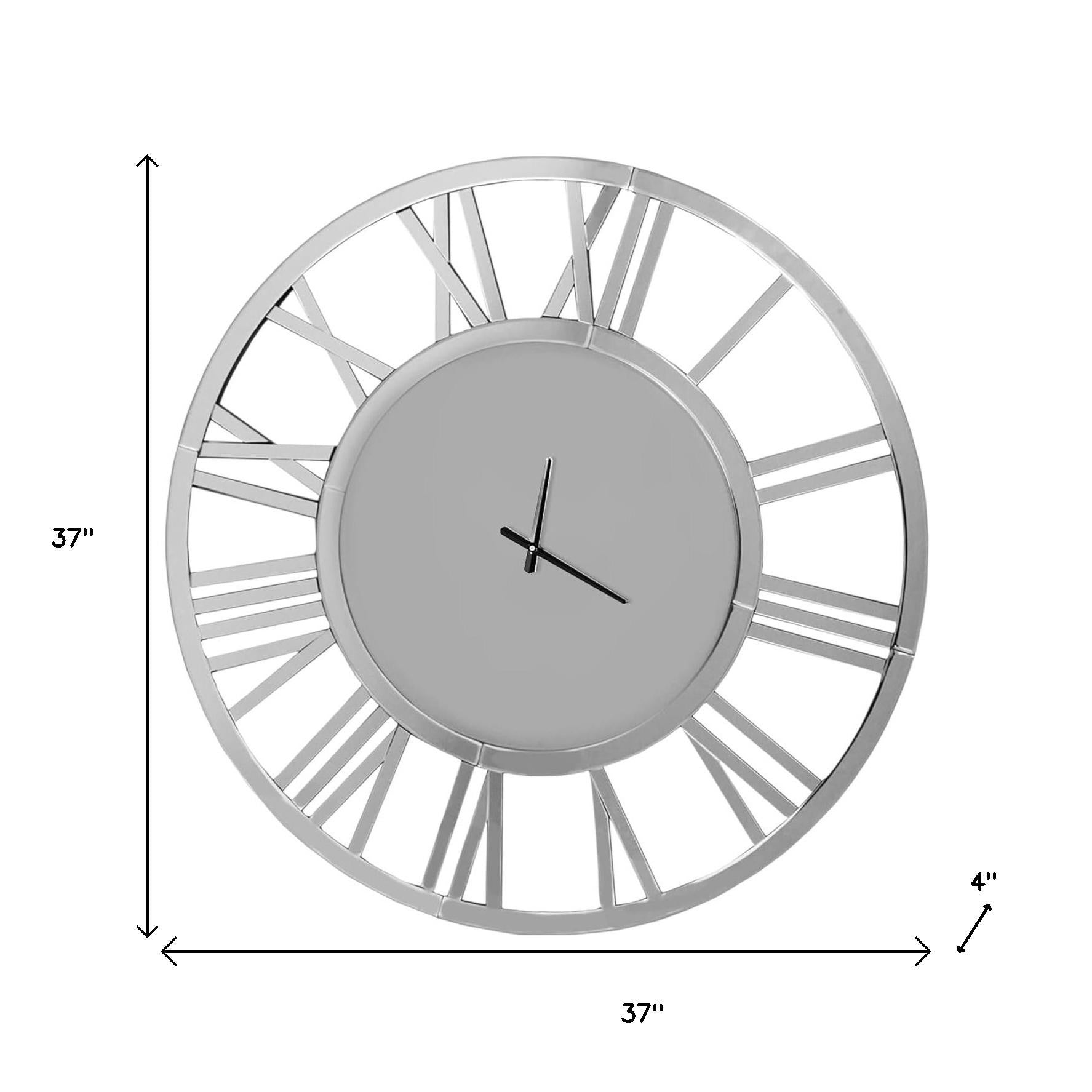 37" Silver Acrylic Silent Analog Round Wall Clock