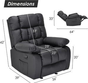 39" Black Faux Leather Manual Recliner