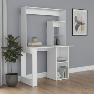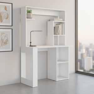 39" White Wood Computer Desk With Hutch