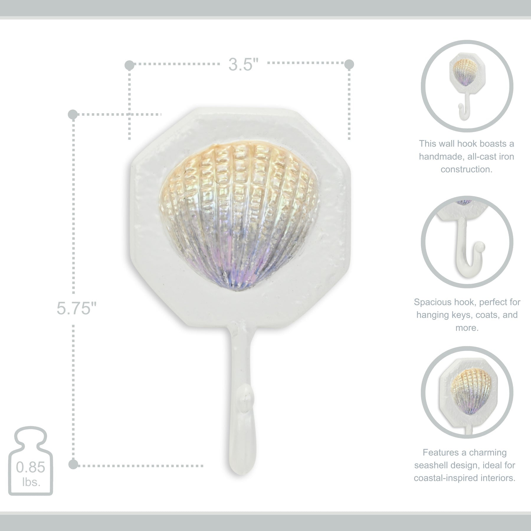 4" Cream And Pearl Cast Iron Seashell Wall Hook
