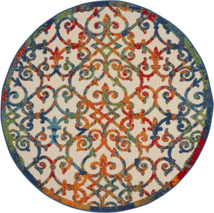 4' Ivory And Blue Round Indoor Outdoor Area Rug
