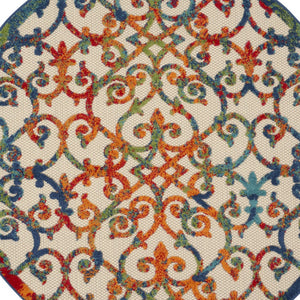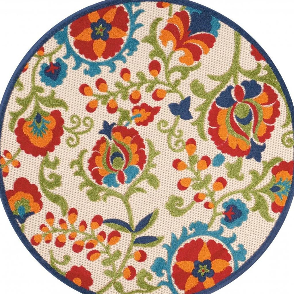 4' Ivory Blue Orange And Green Round Trellis Indoor Outdoor Area Rug