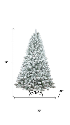 4' White Full Flocked Fir Christmas Tree With Decorations