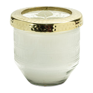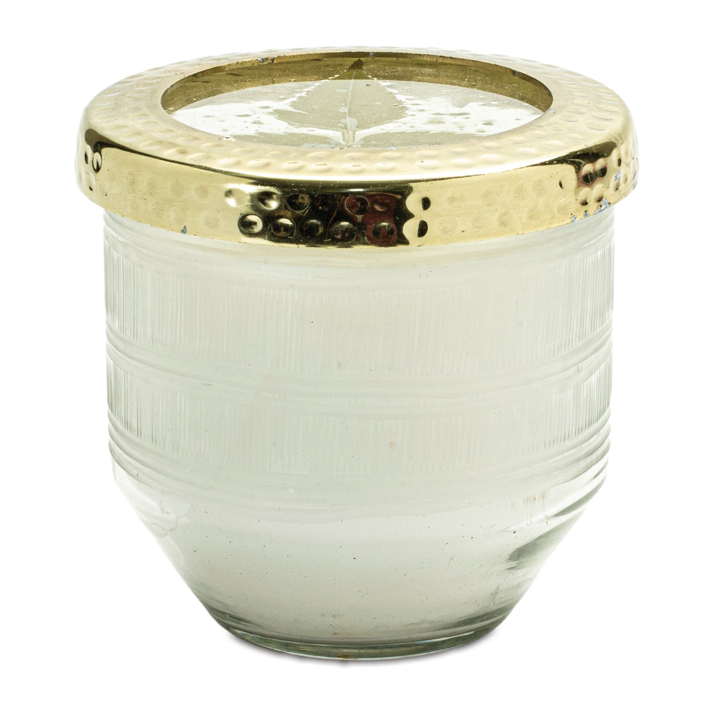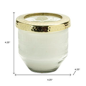 4" White Scented Dripless Two Wick Designer Candle With Clear And Gold Holder