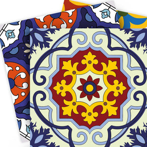 4" X 4" Blue And Yellow Mosaic Peel And Stick Removable Tiles
