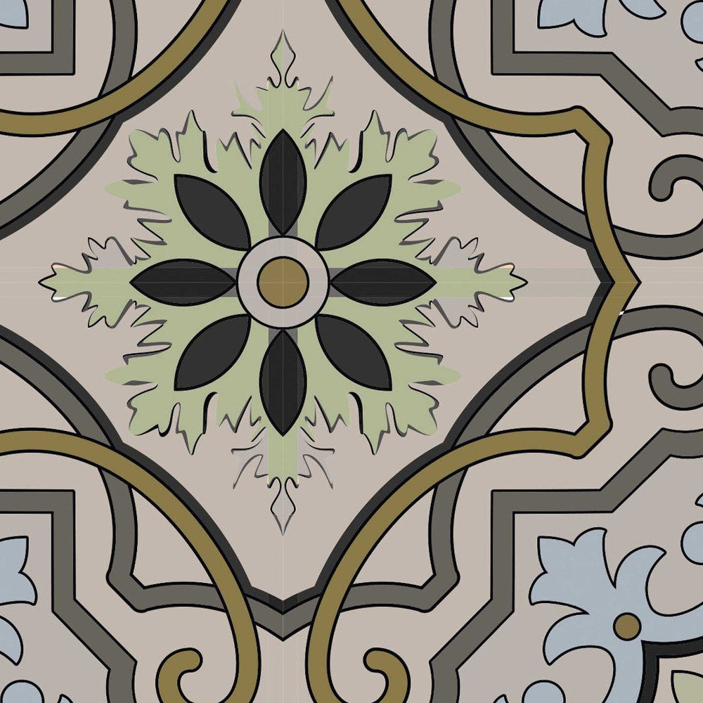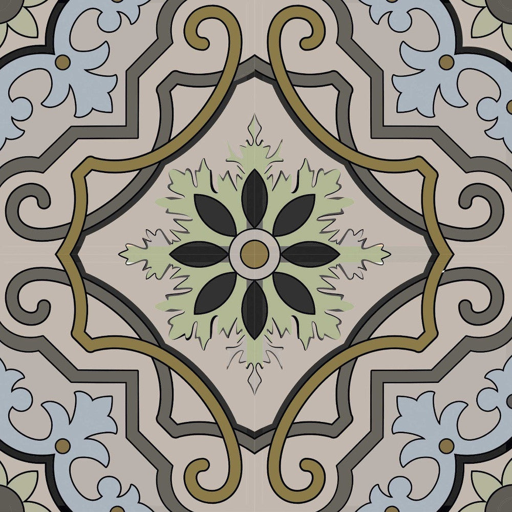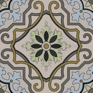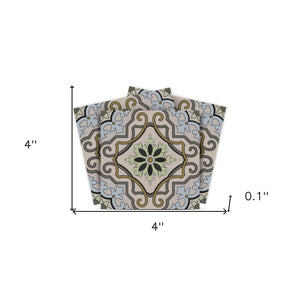 4" X 4" Taupe and Blue Scroll Peel and Stick Tiles